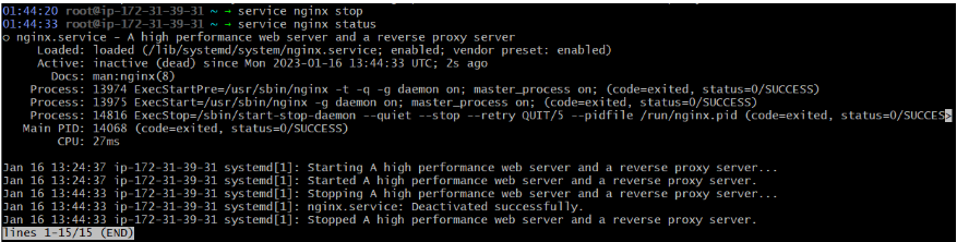 - Nginx ์คํ, ์ข ๋ฃ ํ๋ฉด