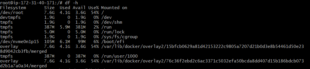 ๋ค์ df -h ๋ช ๋ น์ด๋ก ์ฉ๋์ ํ์ธํด๋ณด๋