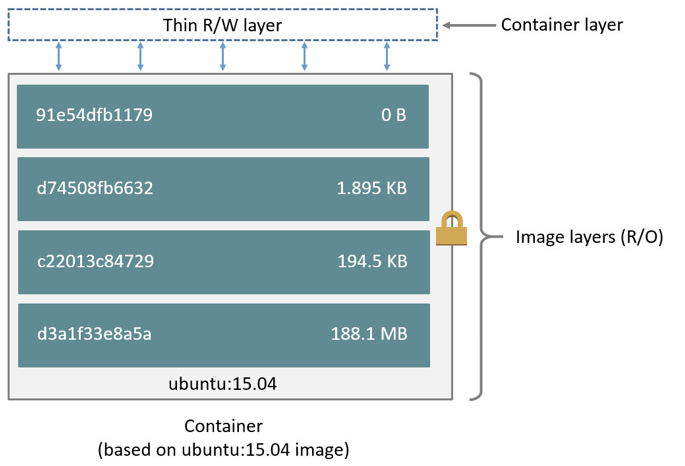 ๋์ปค ์ด๋ฏธ์ง์์ ๋ ์ด์ด๋ ๊ฐ๋ ์ ์ผ๋ก ๊ฐ๊ฐ์ ํ์ผ ์์คํ ์ ๊ฒน์ณ ๋์ ํํ์ ์ ์ฌํ๋ค.