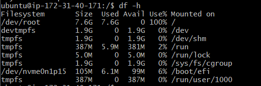 /dev/root ๊ฐ 7.6G ์ธ๋ฐ.. 100% ์ฌ์ฉ ์ค